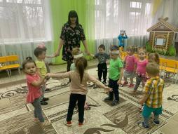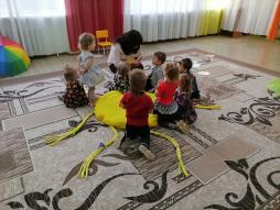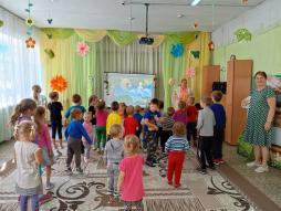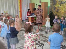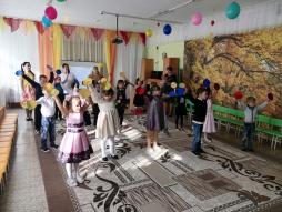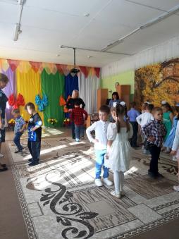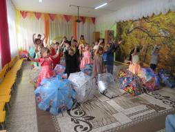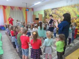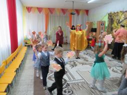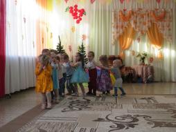 В музыкальном зале маленькие детки с Осенью играли, пели и плясали.